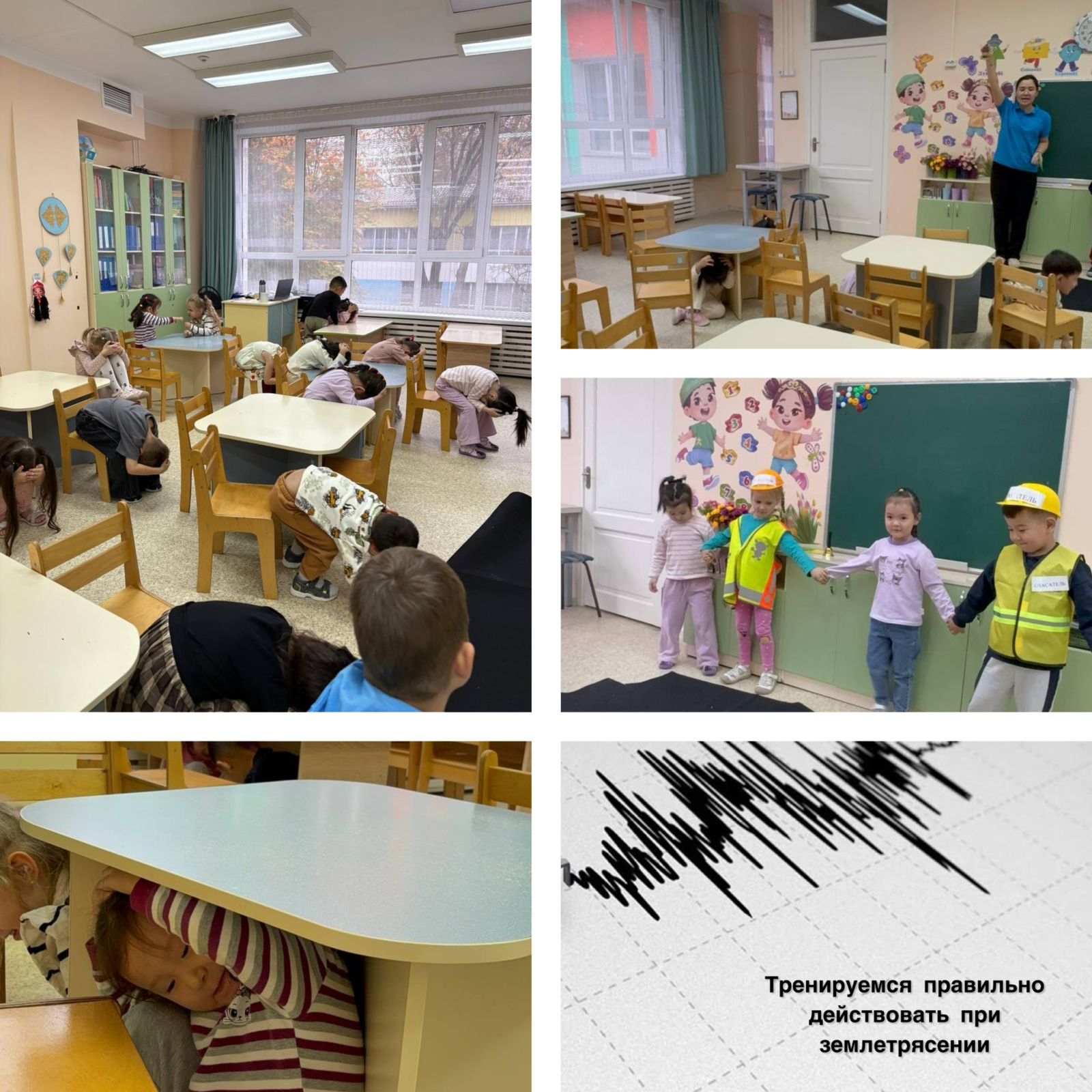 21 ноябрь 2025 0 1 2 3 4 5 "Правила безопастности при землетрясении" Цель: научить детей выполнять правила безопасности при землетрясении-прятаться под столом, в дверном проеме, держаться ближе к внутренним капитальным стенам, дальше от окон