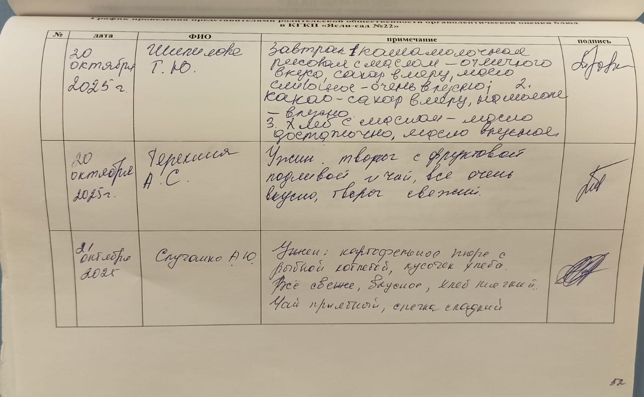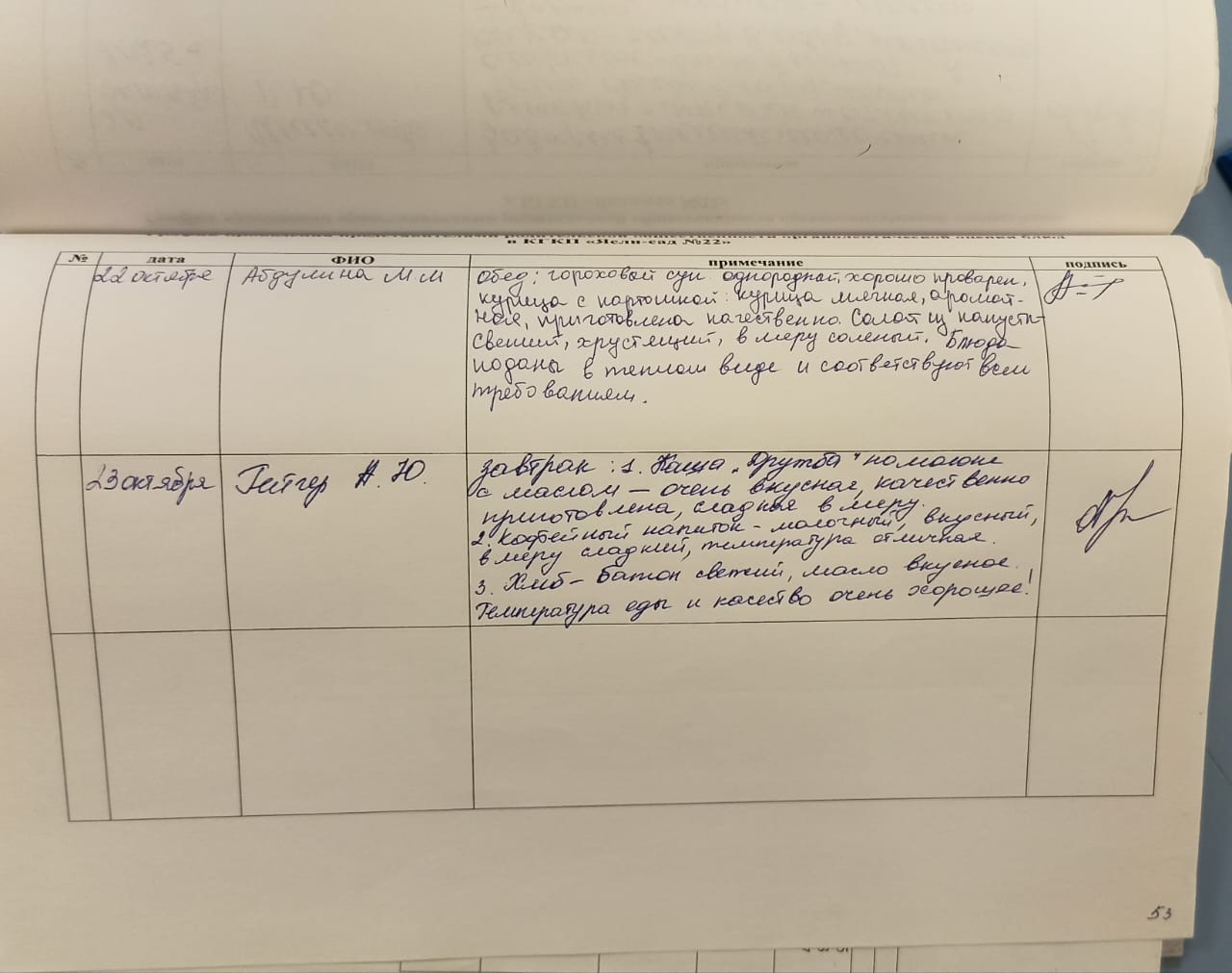 Ата - аналардың ас мәзірінің органолептикалық сапасын бақылауы