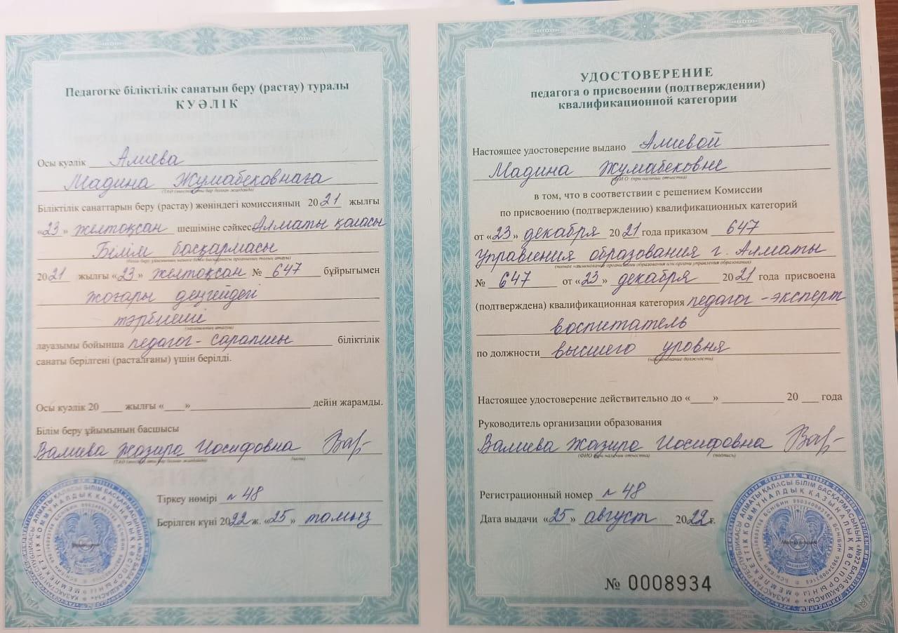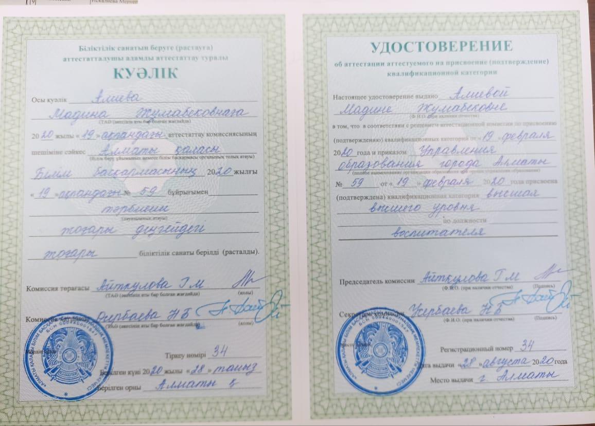 Алиева Мадина Жумабековна